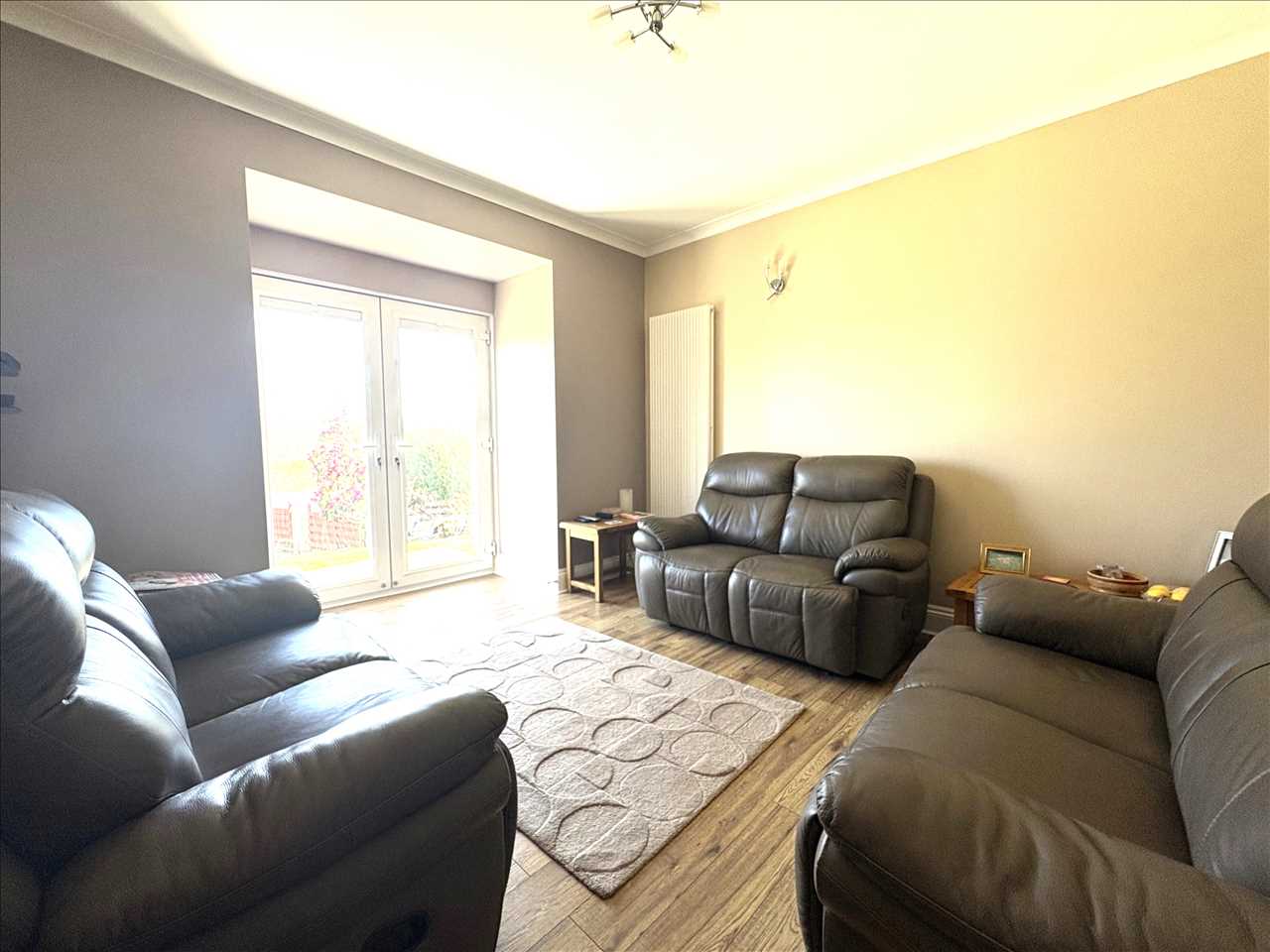 Having patio doors that lead out onto the garden, central pendant light, TV aerial point, laminate flooring, radiator and panelled oak door.