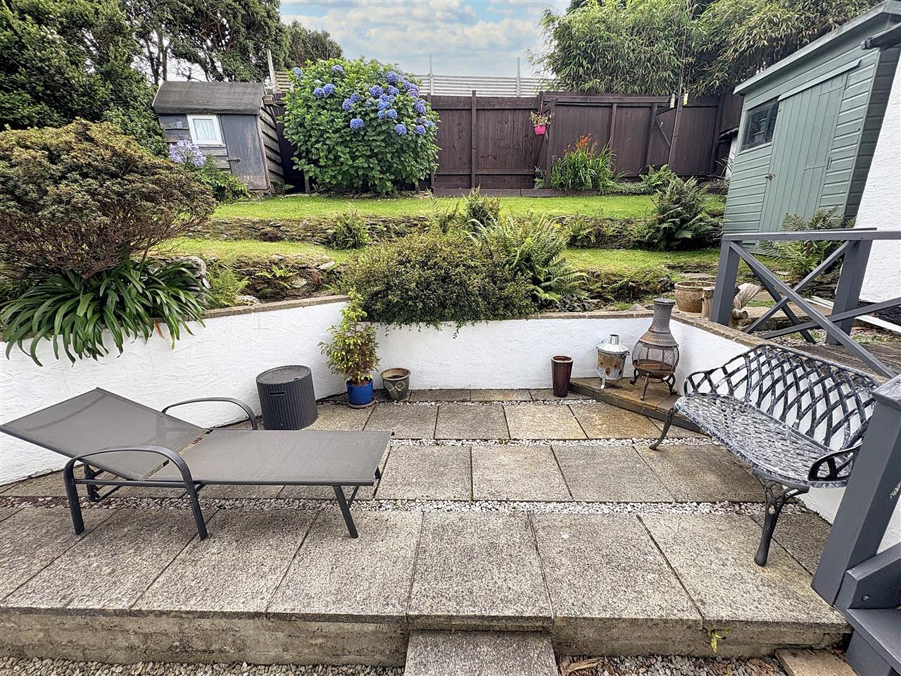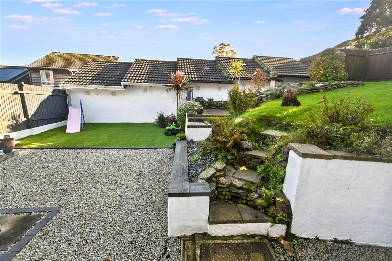 To the rear there are superb tiered, well maintained, lawned gardens sporting a wide selection of mature plants and shrubs and an area of Astro Turf providing a great place to sit and relax. There is also a gravelled area with a rotary drying line in situ and a concrete paved patio area adjacent to the patio doors that also provides an ideal place to sit out. There is also exterior lighting and a cold water supply.