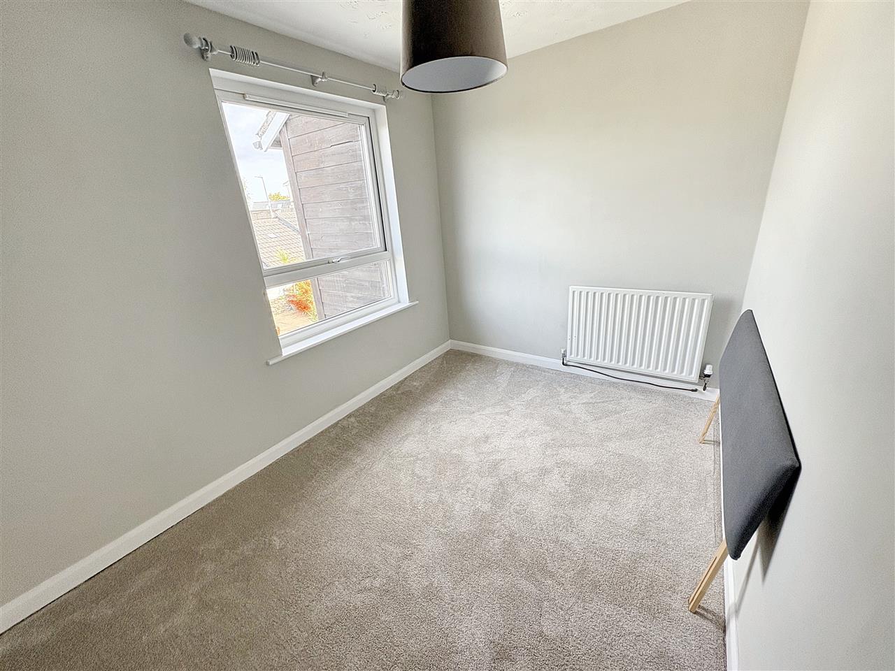 UPVC double glazed window overlooking the rear garden, central ceiling light, radiator, fitted carpet.