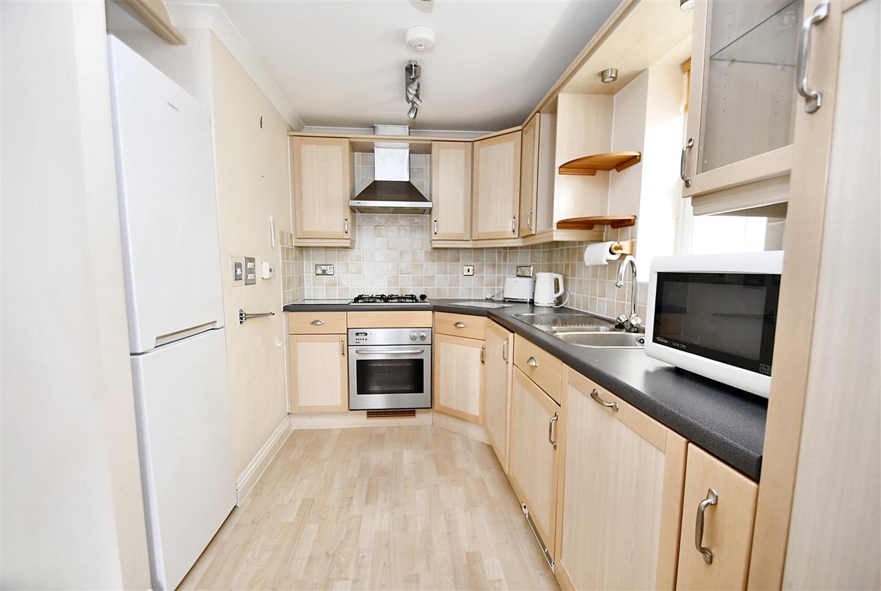 UPVC sash style double glazed window to the side. Fitted with a range of light wood effect wall and base units plus glass display cupboard, dark grey speckled effect roll top work surfaces with ceramic tiled splash backs, inset 1 1/2 bowl stainless steel sink unit with chrome mixer tap, built-in Zanussi electric oven, Zanussi stainless steel four-ring hob with Zanussi stainless steel extractor fan over, built-in Bosch dishwasher, built-in Blomberg washing machine, space for tallboy refrigerator/freezer, wall mounted thermostat for hot water and heating, stainless steel appliance control panel, two banks stainless steel spotlights, light wood effect laminate flooring, fire/smoke detector, kick board extractor fan.