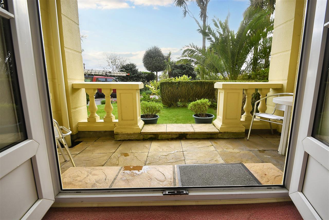 Accessed from the French doors in the living room or from the communal garden.