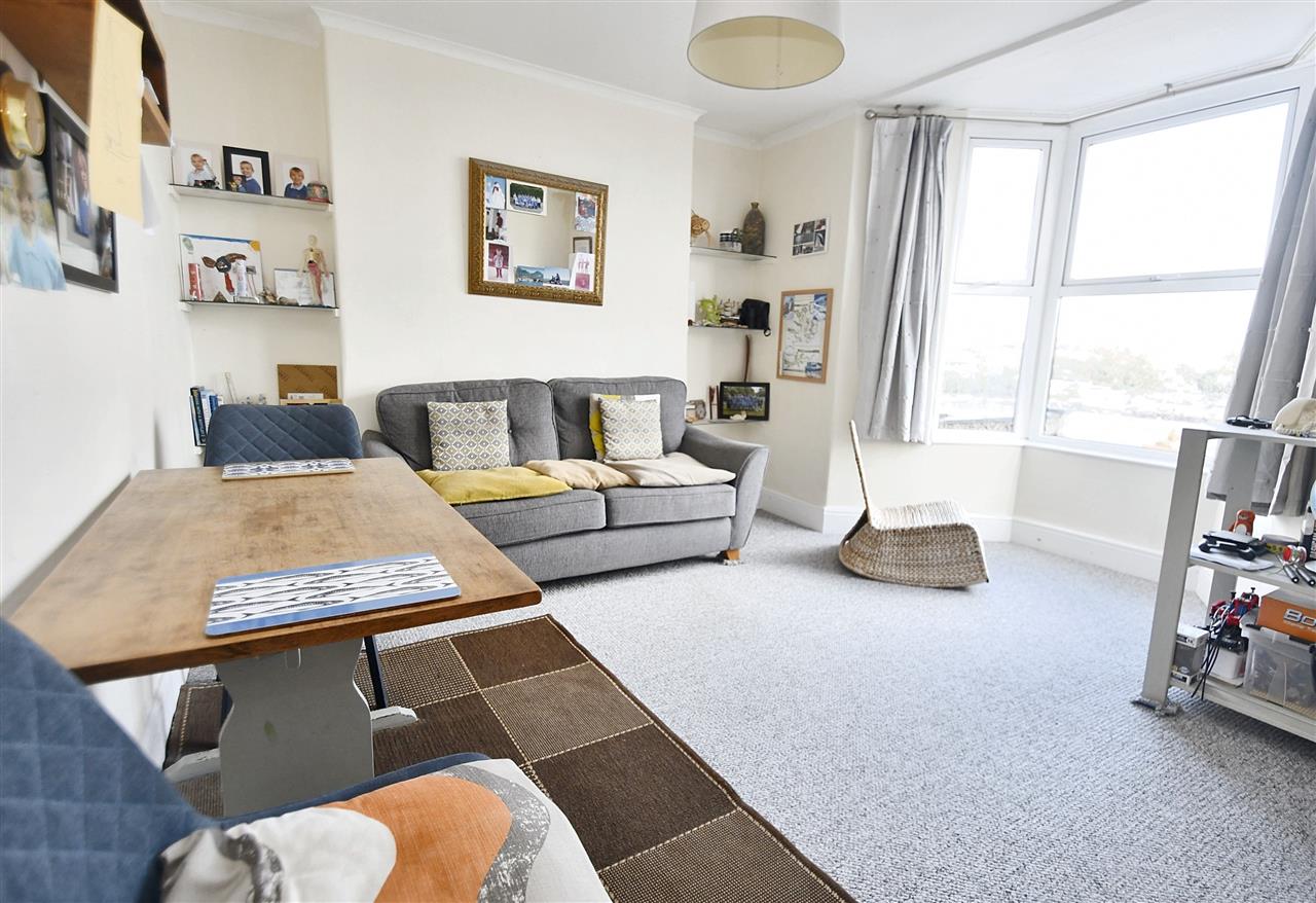With double glazed bay window to the front the commands spectacular water views across to Flushing, Falmouth Docks and countrywide beyond, wooden panelled door, pendant light fitting, two recessed alcoves with glass shelving, carpeted, radiator.