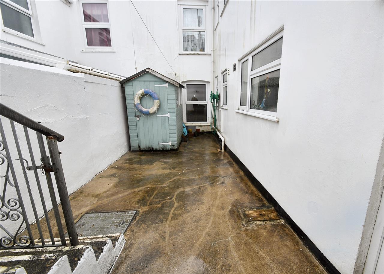 The low-maintenance courtyard garden enjoys a pleasant southerly aspect, providing the perfect spot to sit back, relax, and entertain. It also features a useful storage shed and steps leading to the service lane, accessible via a right of way across the neighbouring garden.