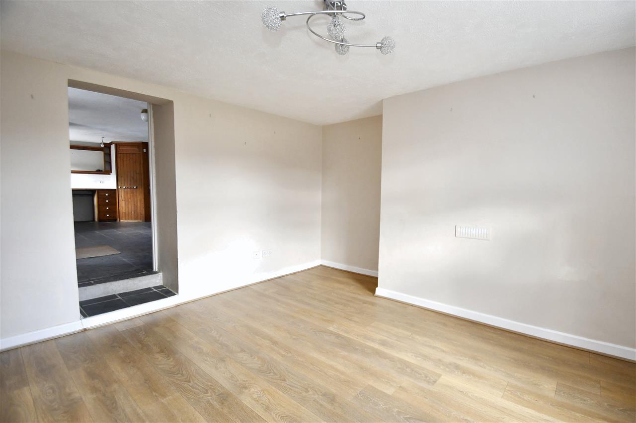 Having deep recessed boxed sash style double glazed window again overlooking the front garden with southerly views to the countryside, double radiator, wood finished flooring, deep under stairs storage cupboards, central ceiling lights. Two steps up to: