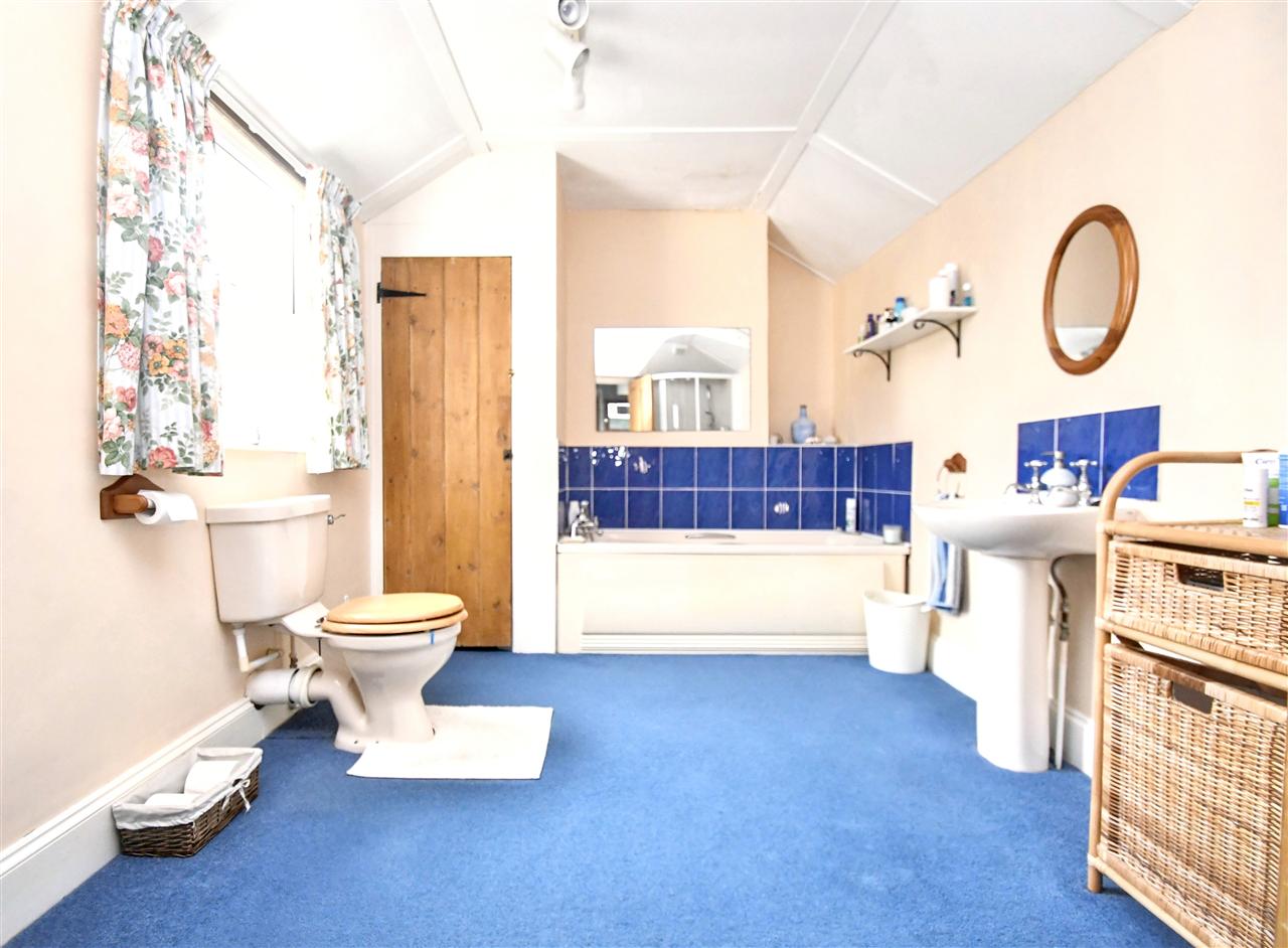 A really spacious bathroom with a coloured suite comprising; handled and panelled bath with chrome mixer taps, shower attachment and telephone hand shower, tiled surround and fitted mirror over, pedestal hand wash basin with chrome hot and cold taps and tiled splash back, separate shower cubicle with chrome mixer shower and curved screening, radiator, fitted carpet, frosted double glazed window, linen cupboard housing a Worcester LPG gas central heating boiler and slatted shelving, stripped pine internal door.