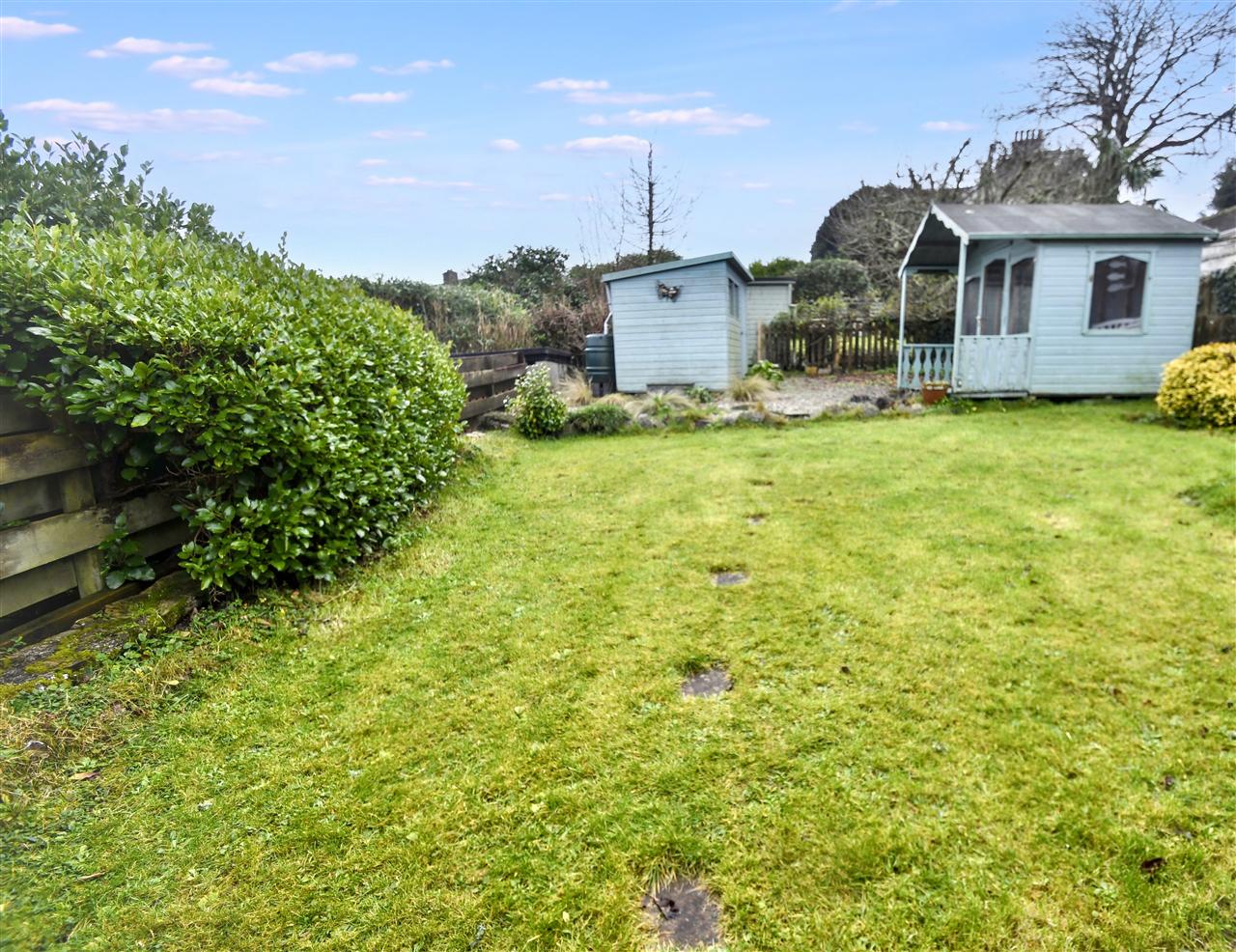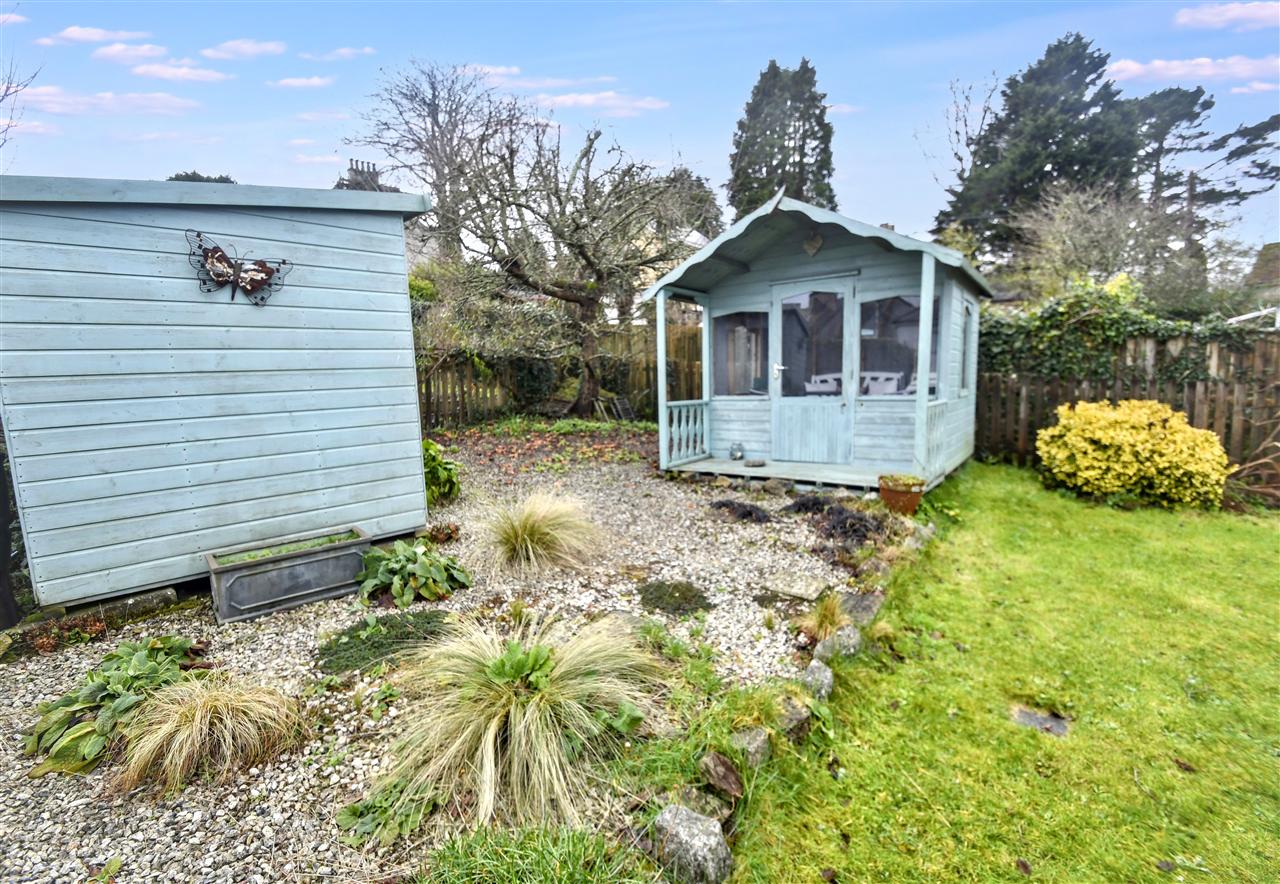 To the front of the property there are raised lawns and a concrete path. At the rear of the property you will find a paved patio area from the kitchen, a covered area for the LPG gas bottles and steps leading to a delightful rear garden which enjoys plenty of sunshine and has a patio and gravelled area with three steps leading to gently sloping lawns with well stocked flower borders with plants and shrubs including Rhododendrons, Azaleas, Camellias and Pieris. There is a gravelled area which has a painted timber garden shed on one side and to the right, a painted timber summerhouse with covered veranda.