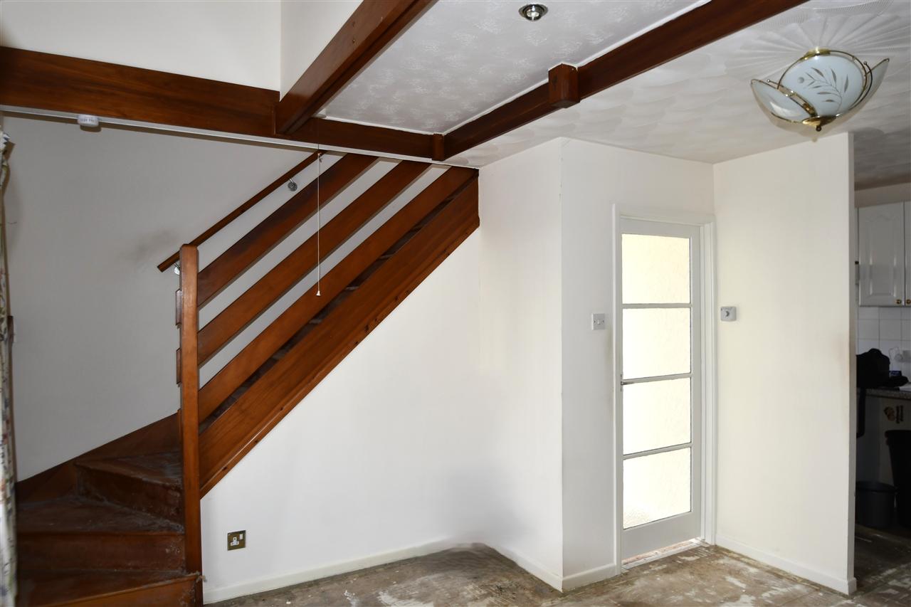 UPVC double glazed picture window overlooking the front aspect with vertical blinds, partly vaulted textured ceiling (originally had a gallery from the bedroom), wooden beams, pendant ceiling light, spotlights, radiator, TV aerial point, wood panelled turning staircase to the first floor.