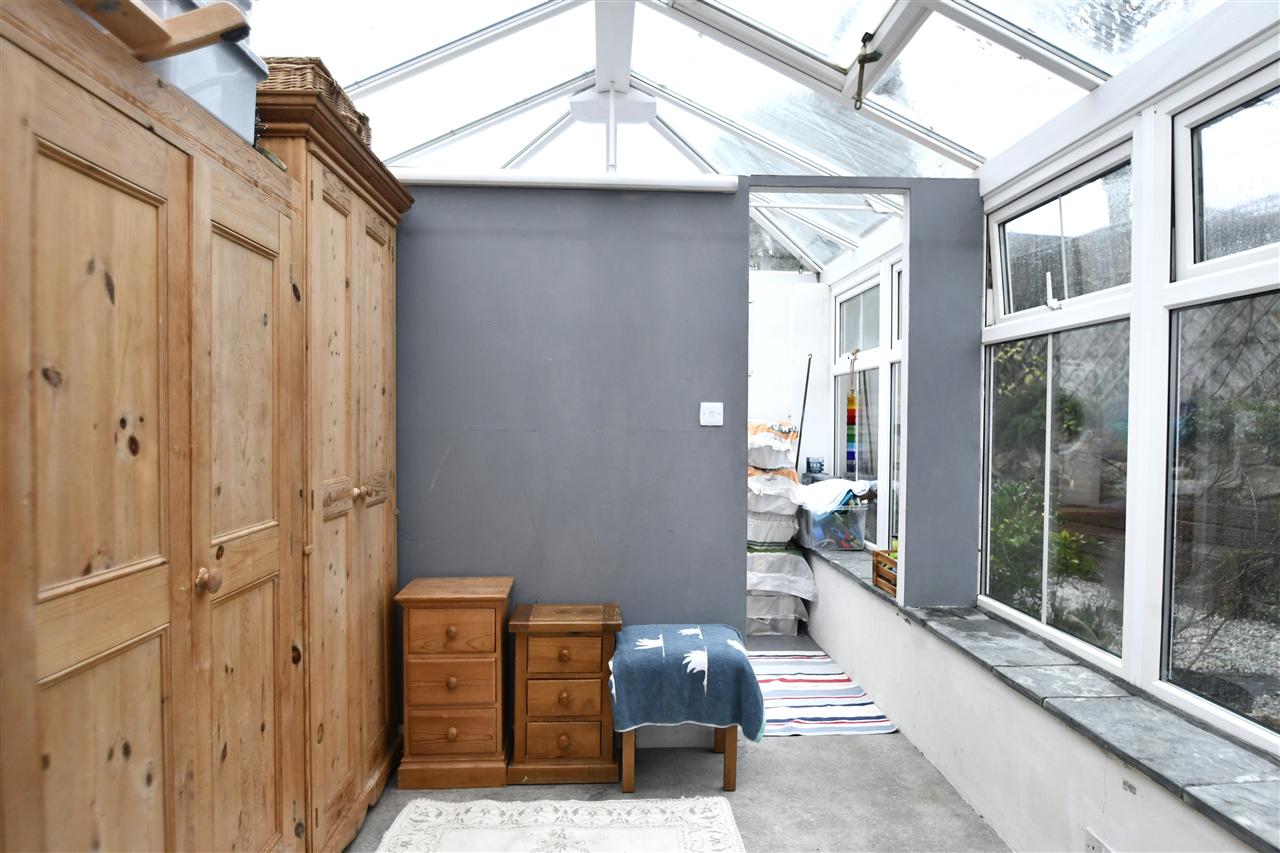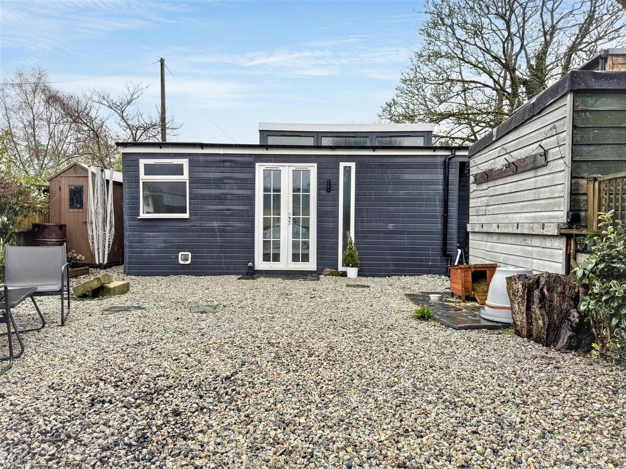 The gardens have been landscaped for ease of maintenance starting with gravelled areas, slate and wooden bench seating to the right hand side and well stocked rockeries above, continuing to a delightful gravel seating area which is well screened by timber fencing and continuing up to the top level of garden which is again gravelled and has a variety of plants and shrubs and a palm tree and various seating areas to enjoy the sunshine throughout the day. To the right hand side sits a large garden shed of block and timber construction with light and power and this measures 3.56m (11'8") x 2.34m (7'8") and finally, a timber studio sits across the rear boundary providing a useful area for outdoor entertaining in the spring and summer months.