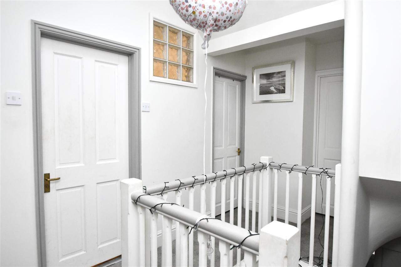 With pitched roof and double glazed Velux window, over stairs drop lighting, double linen cupboard.