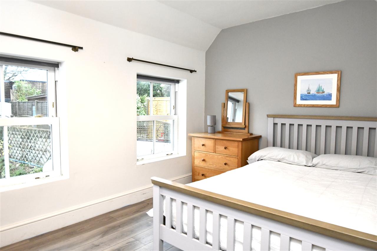 Another bright double bedroom with two recessed double glazed sash windows overlooking the rear garden, hard wearing wood finish flooring, radiator, canopied ceilings, panelled internal door.