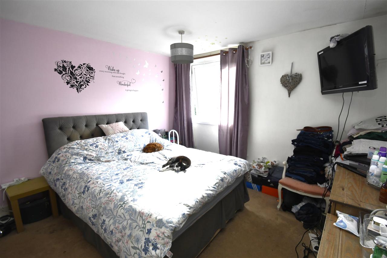 UPVC double glazed window overlooking the front, carpet, pendant light, storage cupboard.