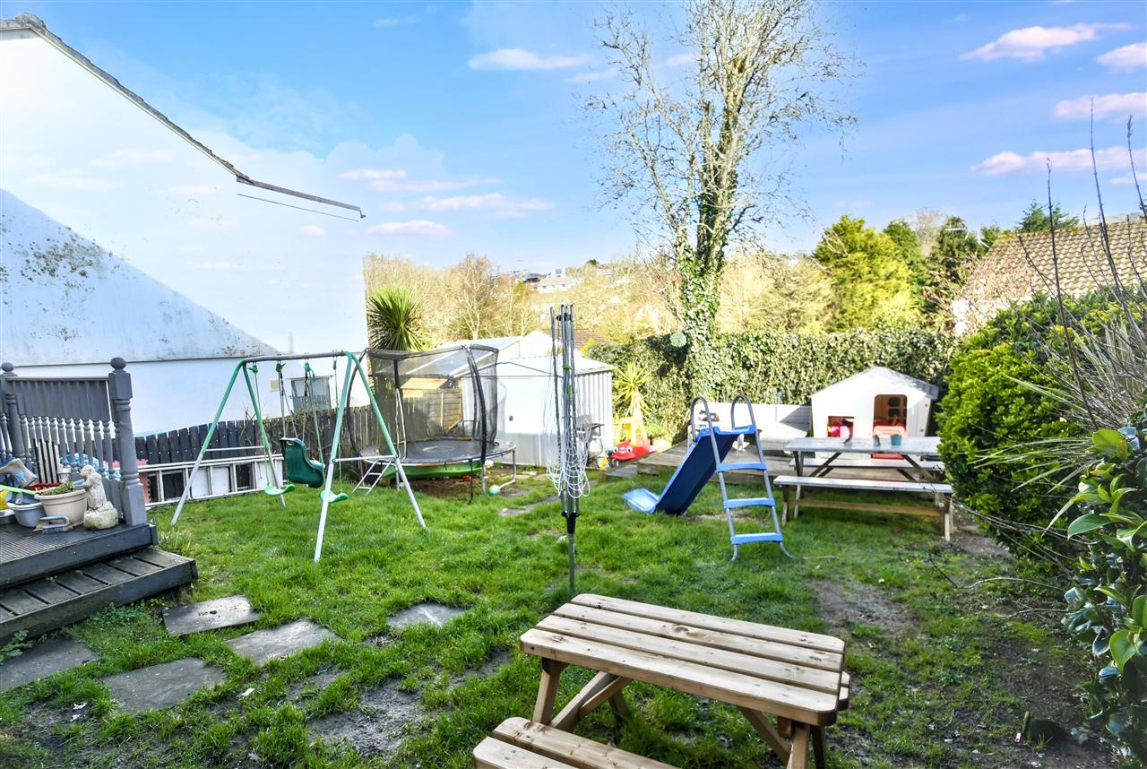 To the front there is an open plan lawned garden and a tarmacadam driveway with handrail taking you to a path leading to the front door. To the rear there is an area laid to decking immediately outside the second reception room with steps leading down to a gently sloping lawn. To the foot of the garden there is another area of decking which ideal for catching the afternoon sun. The garden is enclosed by timber fencing and mature shrubs and trees.