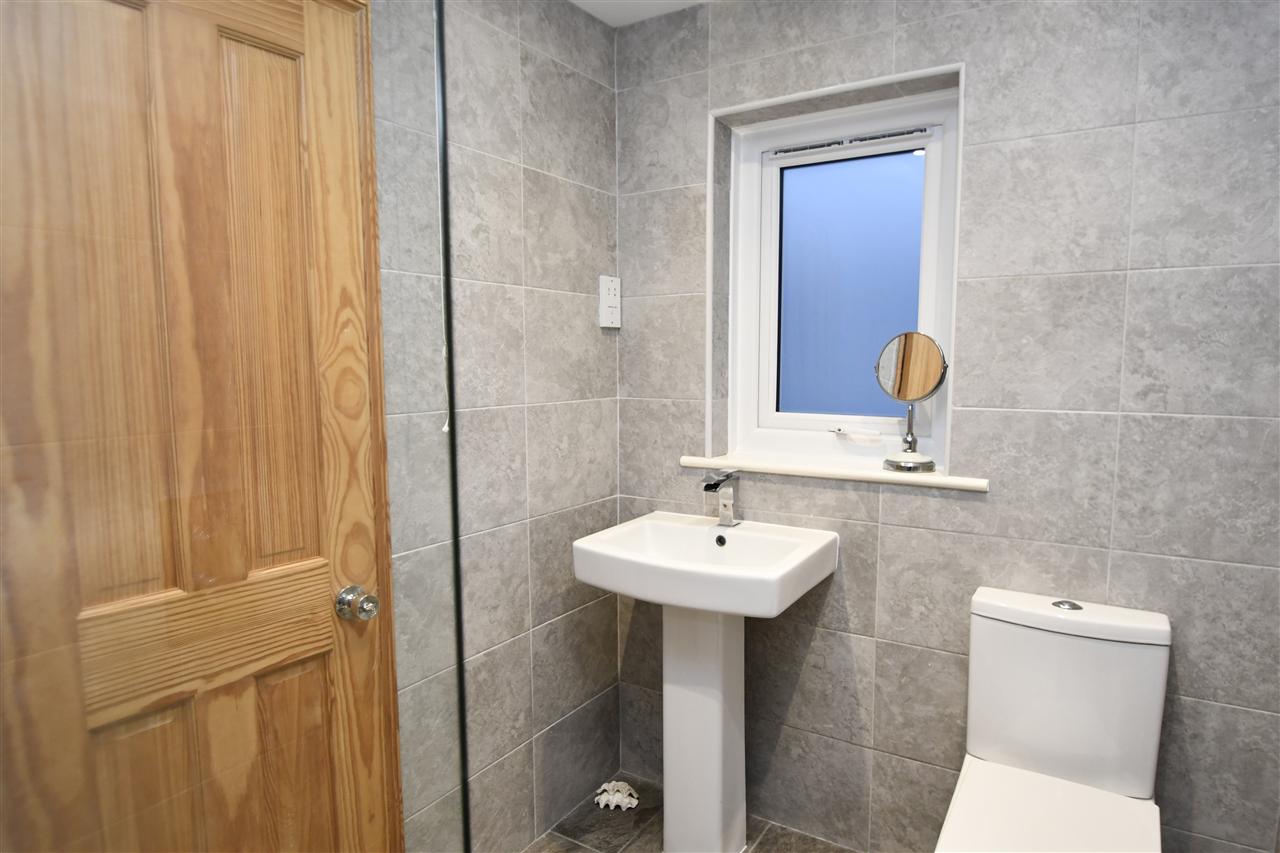 A luxuriously appointed shower room with bright dual aspect frosted double glazed windows to the front and side. Fitted with a white suite comprising; large fully tiled shower cubicle with chrome mixer shower with conventional and rainfall head, glass screening, pedestal hand wash basin with contemporary mixer tap, low flush wc, fully tiled walls and flooring, shaver point, chrome ladder style heated towel rail, inset ceiling spotlights, pine internal door.