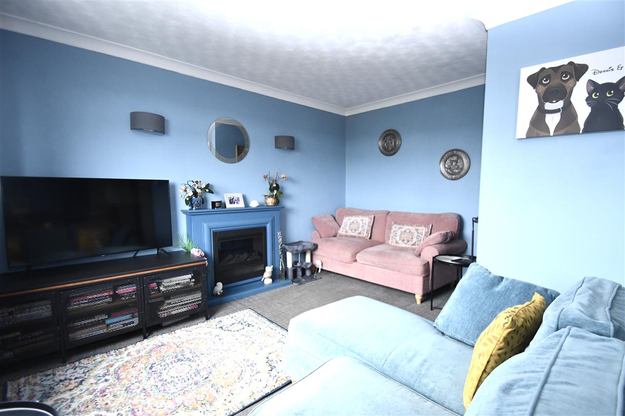 UPVC double glazed windows with fine elevated views over Penryn, countryside, St Gluvias Church and the river below. Feature fireplace with timber surround housing an electric fire, radiator, textured coved ceiling, wall lights, finished with a carpet.