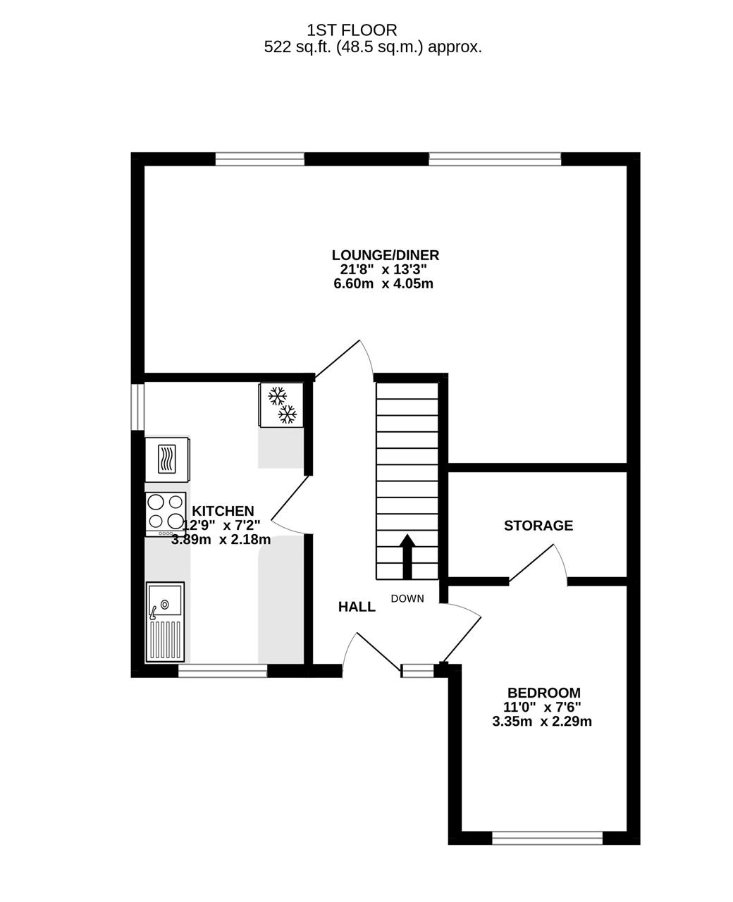 KITCHEN 3.91m (12'10") x 2.21m (7'3")
