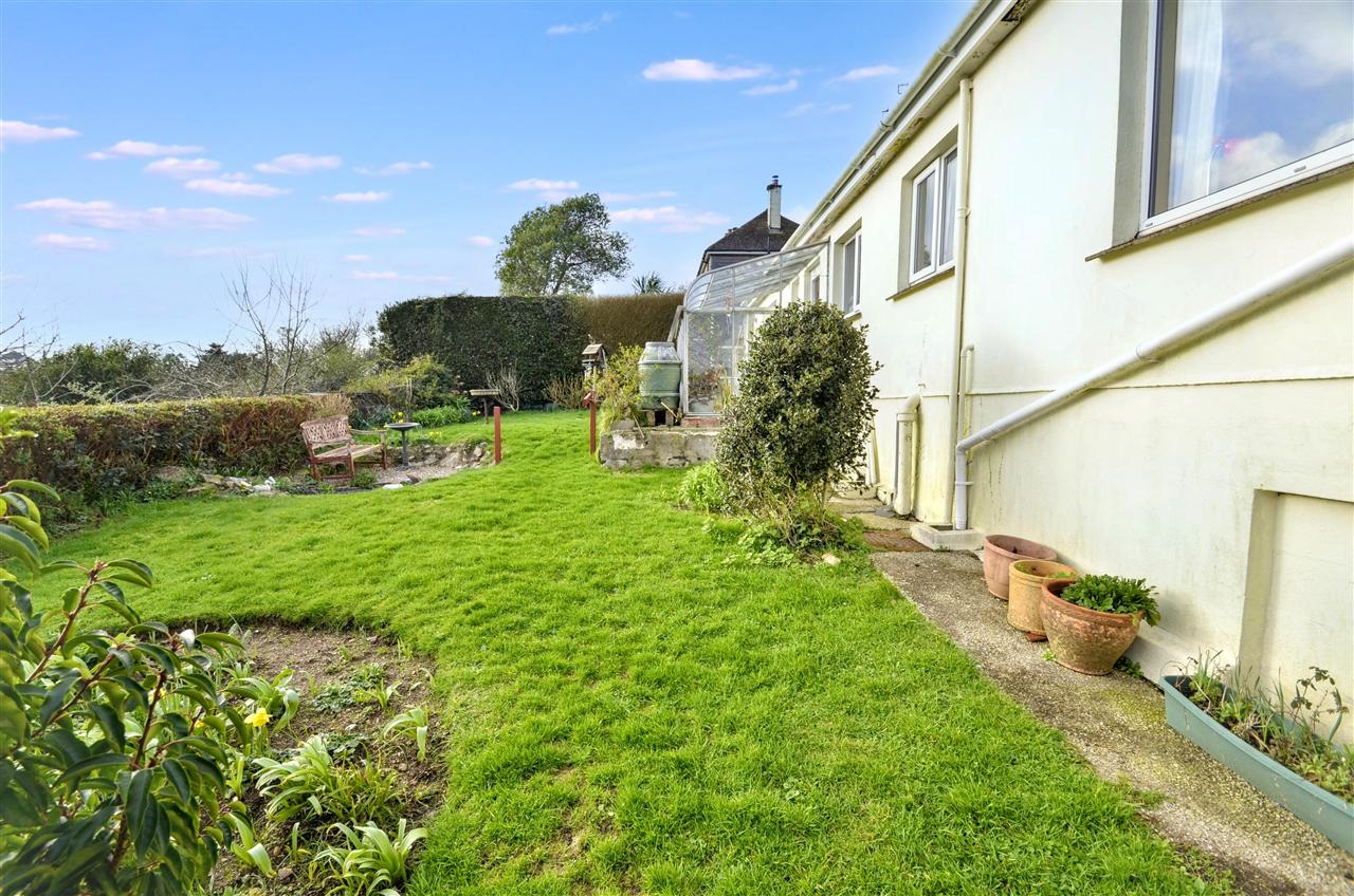 The gardens are mainly laid to lawn with patios, mature flowerbeds with flower and shrub borders again enjoying fine views over the open countryside towards Goonhilly and The Lizard Peninsula.