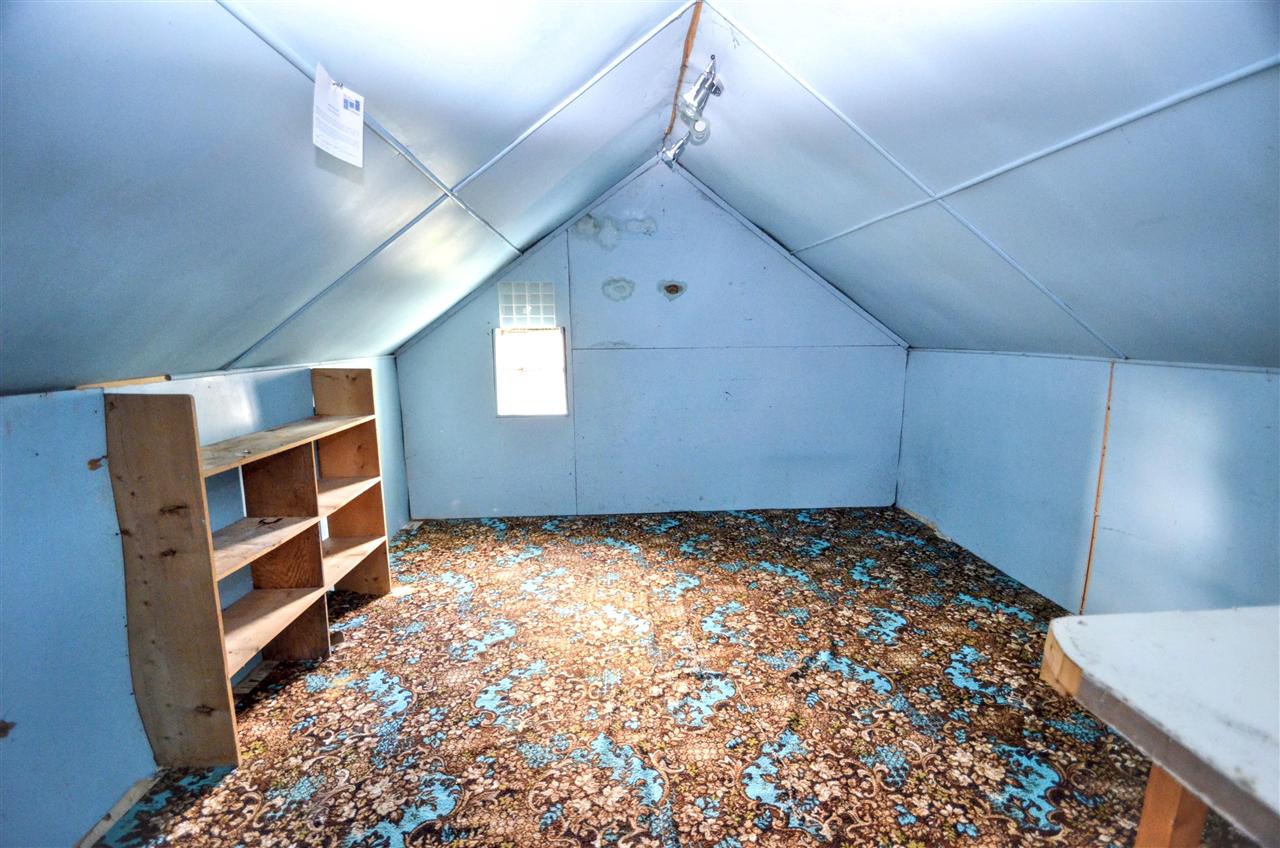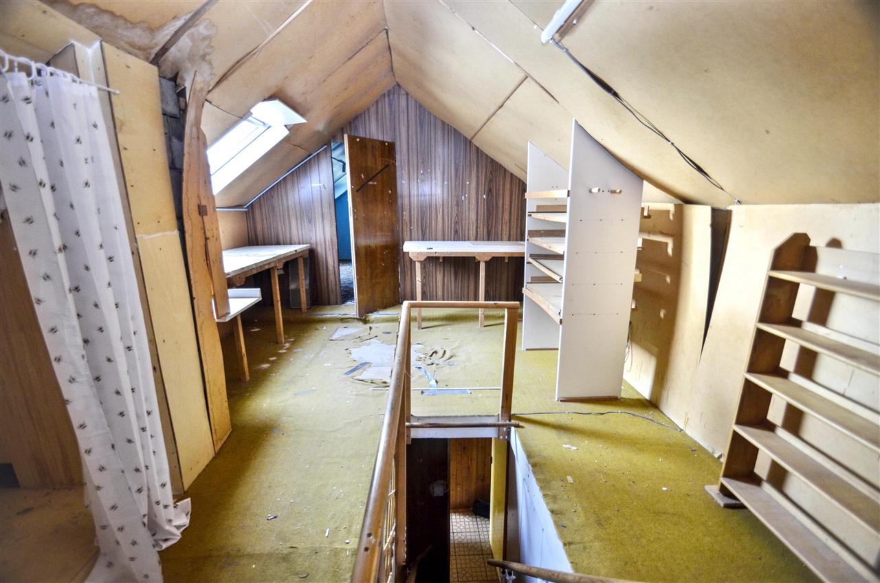 CONCEALED CLOSED TREAD STAIRCASE FROM HALLWAY LEADS TO THE ATTIC SPACE THAT HAS BEEN DIVIDED INTO THREE ROOMS.