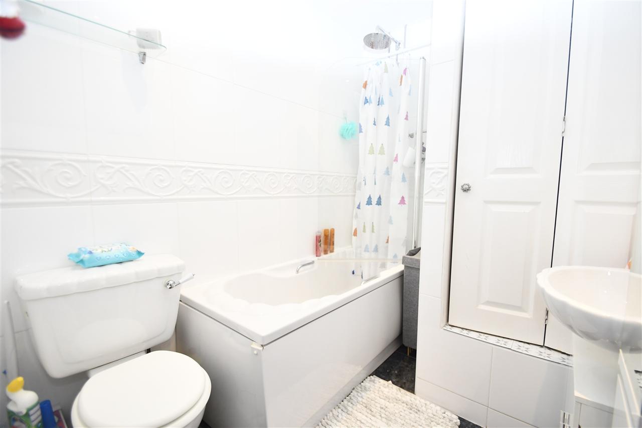 Comprising of a three piece suite with panelled bath and shower over with a glass screen, low level wc, wall mounted sink with cupboard below. Tiled walls, plastered ceiling with spotlights, extractor fan, concertina door to useful storage/airing cupboard finished with a tiled floor.