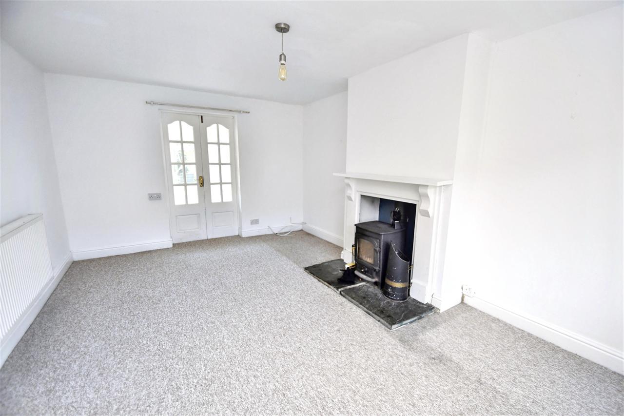 A bright dual aspect room with UPVC double glazed windows overlooking the front aspect, roller blind, multi-paned opening doors looking through the conservatory to the garden, a focal point wood burning stove on a raised slate hearth and painted surround, fitted carpet, double radiator, panelled internal door.