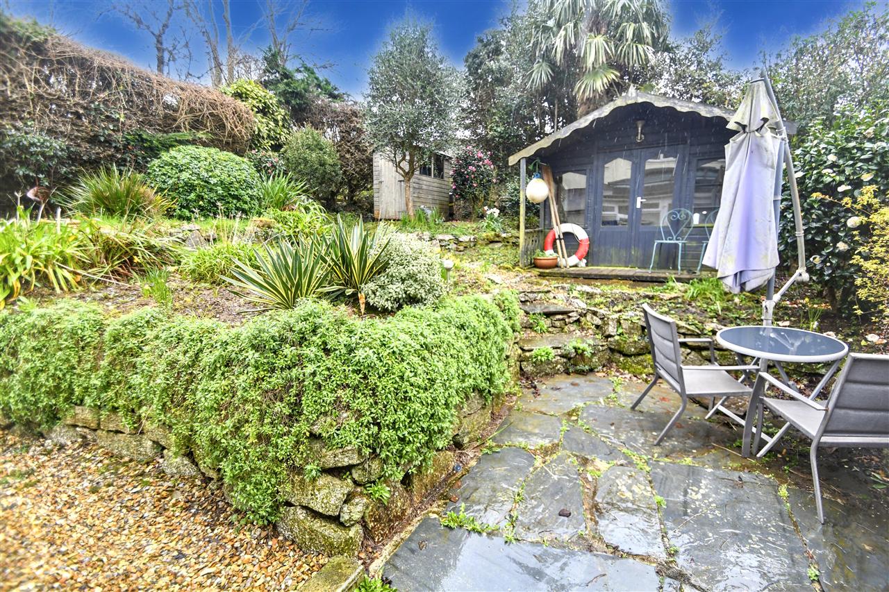 To the front of the property there is a wide, gravelled parking area with space for two family sized vehicles, a pathway and flowerbeds either side. At the rear of the house there are delightful terraced cottage style gardens with slate patio, raised rockeries with plants and shrubs, slate steps leading to the top level of garden with gravelled pathway and further raised beds, a timber summerhouse and garden shed.