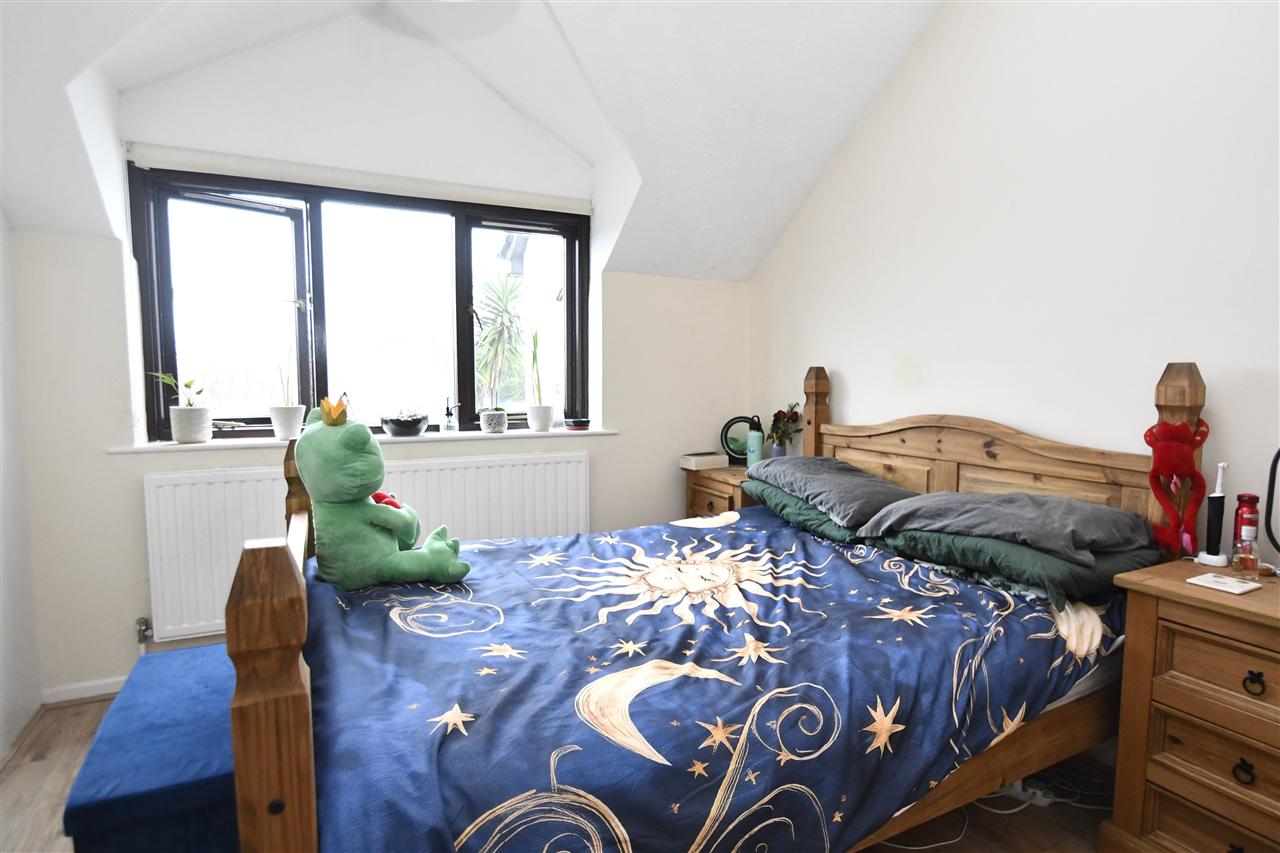 With built-in wardrobe cupboard, hard wearing wood finish flooring, radiator, sealed unit double glazed window overlooking the front aspect with partial country views in the distance, panelled internal door.
