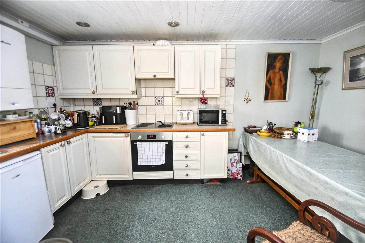 UPVC double glazed window overlooking the side. Fitted with a range of matching wall and base units in cream with roll top work surfaces and tiled surround, inset stainless steel sink with mixer tap, Worcester gas central heating boiler, Bosch electric oven and hob extractor fan over, bookcase in recess, panelled painted ceiling with inset spotlights.