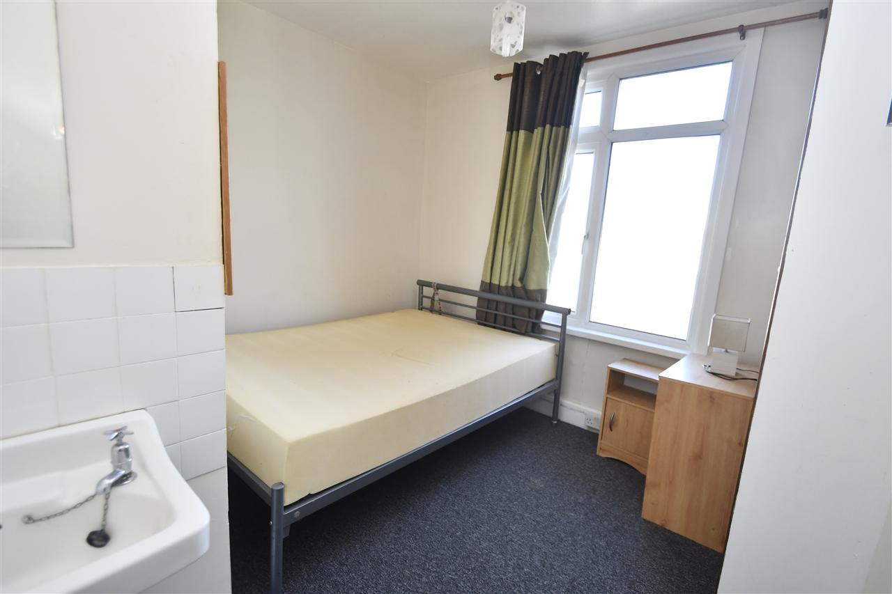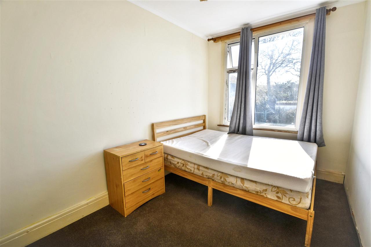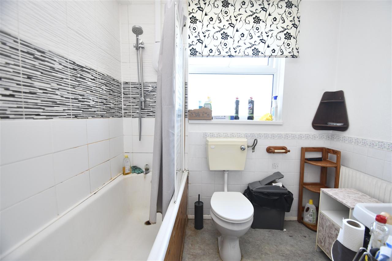 With radiator, pedestal wash hand basin, chrome hot and cold taps, double glazed window overlooking the rear garden, louvre doored wardrobe cupboard.