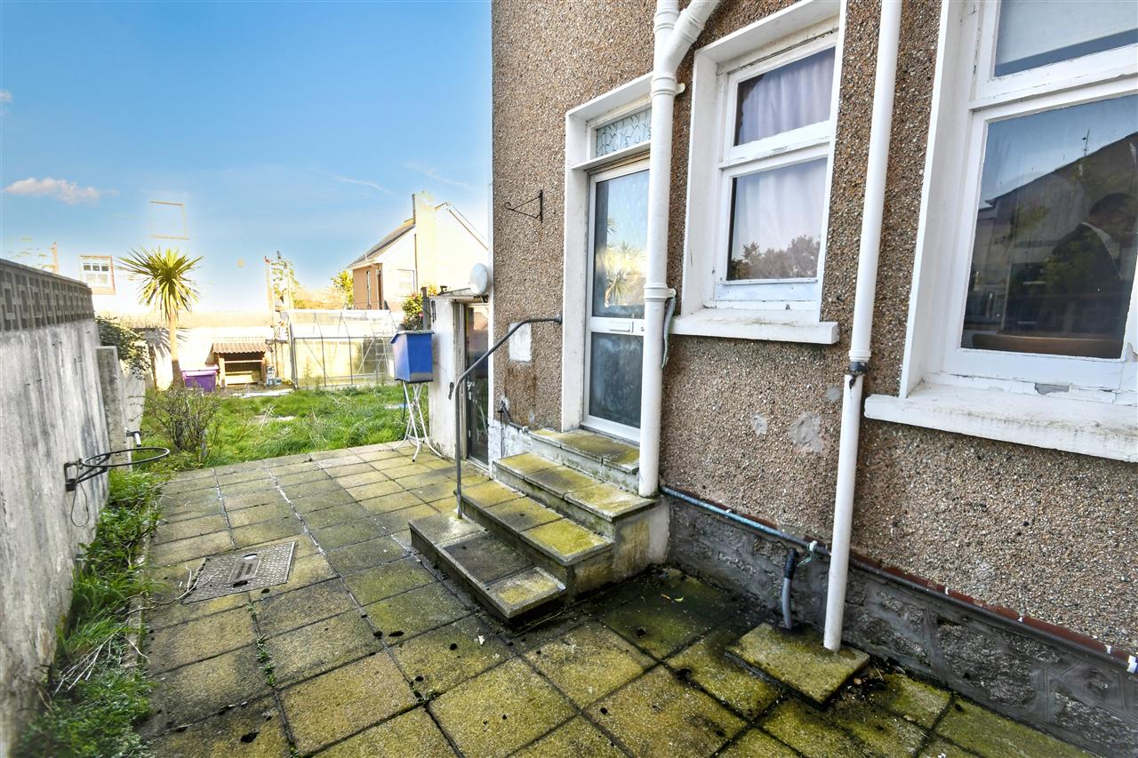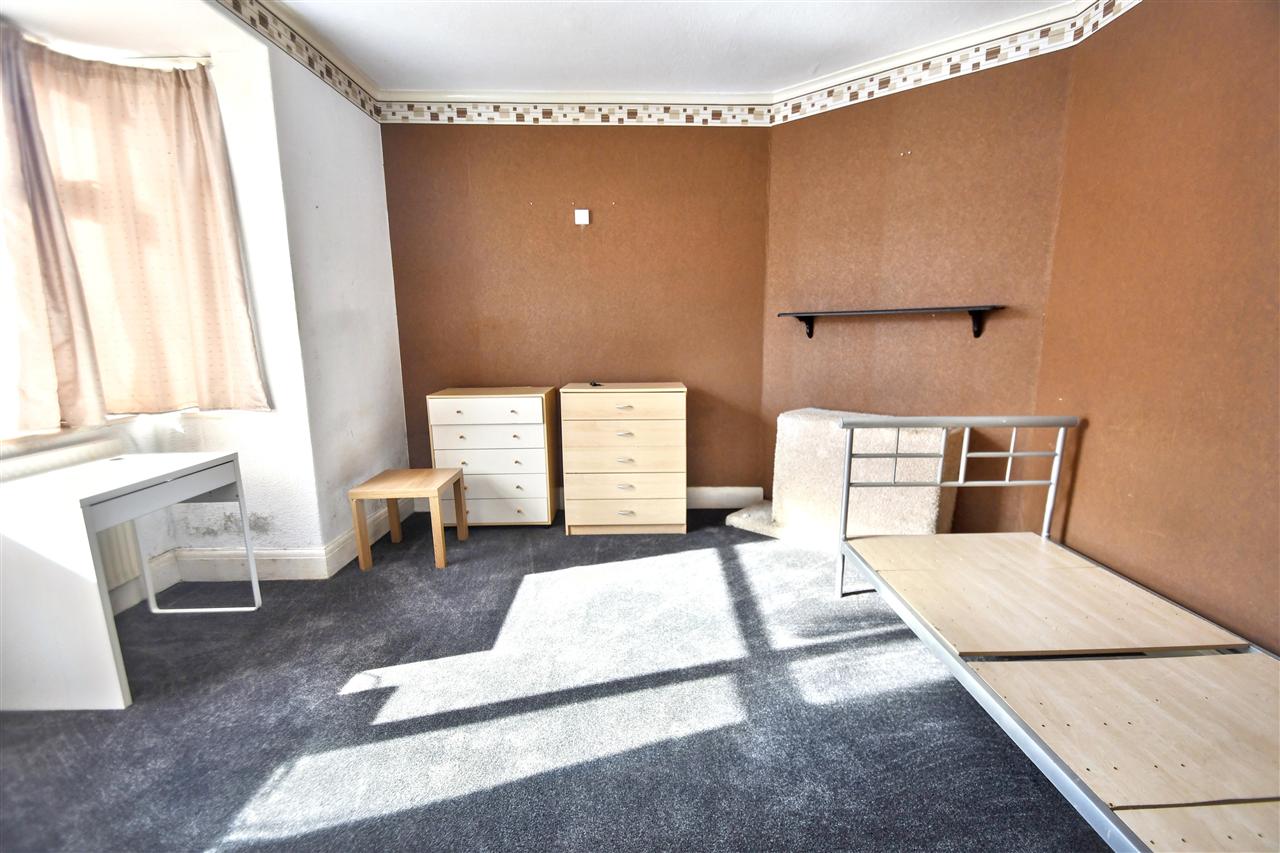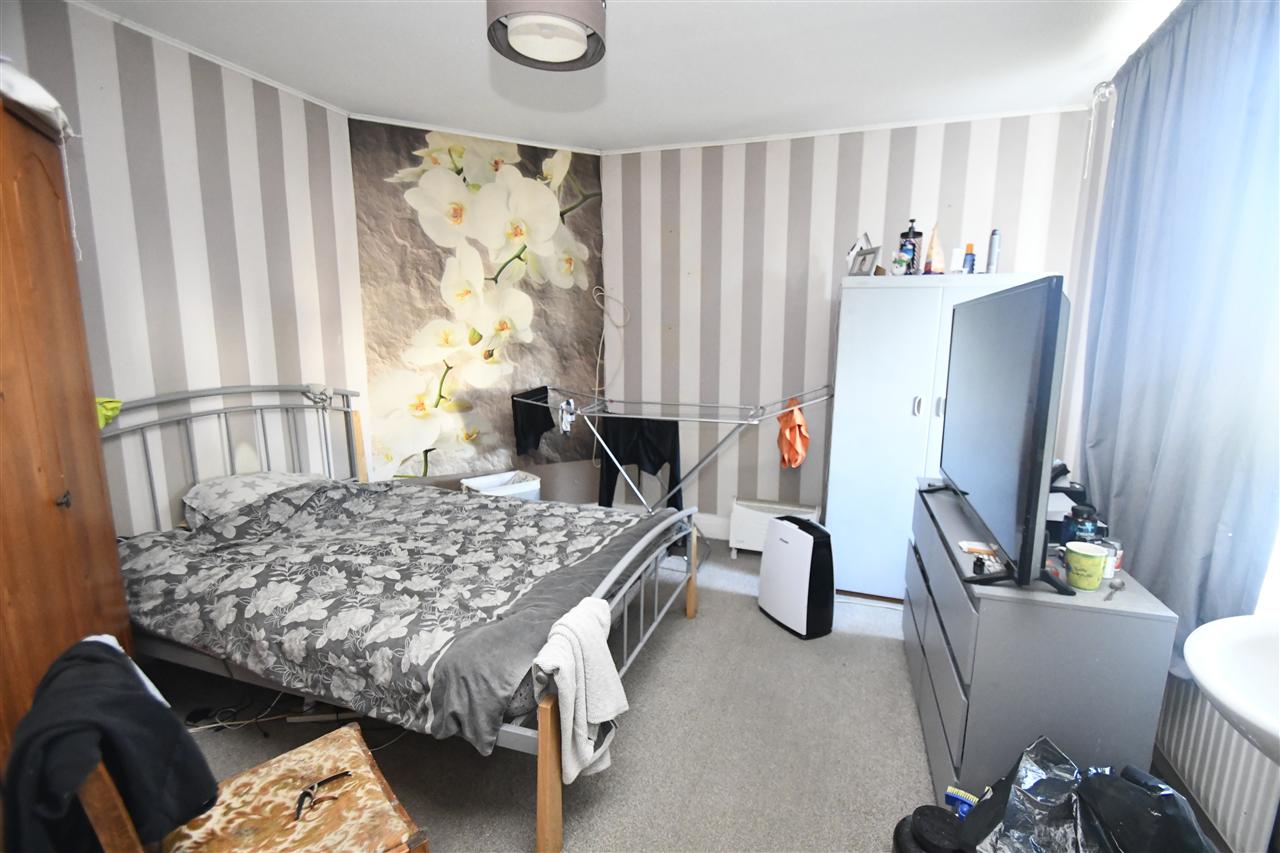 With radiator, pedestal wash hand basin, chrome hot and cold taps, double glazed window overlooking the rear garden, louvre doored wardrobe cupboard.