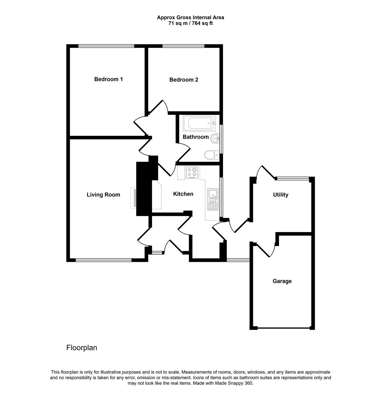 The accommodation in sequence includes an entrance hallway, a good size lounge/dining room, two double bedrooms, a family bathroom, and a kitchen/utility area. Outside the property there is ample driveway parking with a single garage, enclosed front and rear gardens.