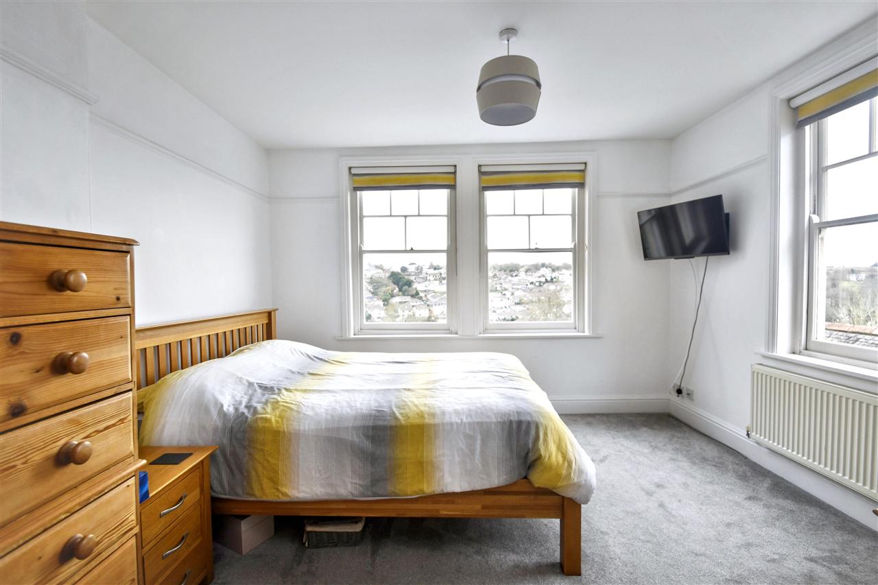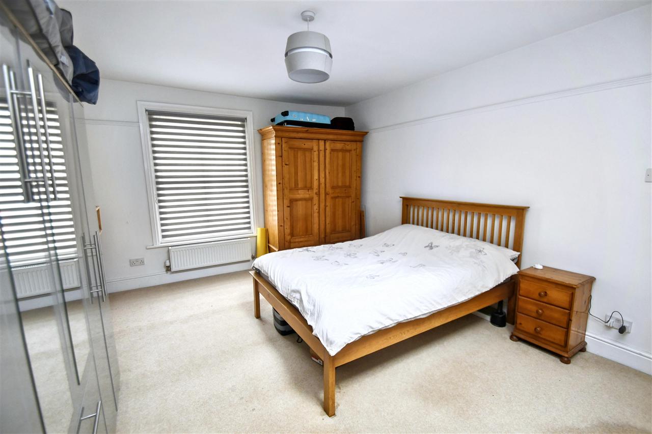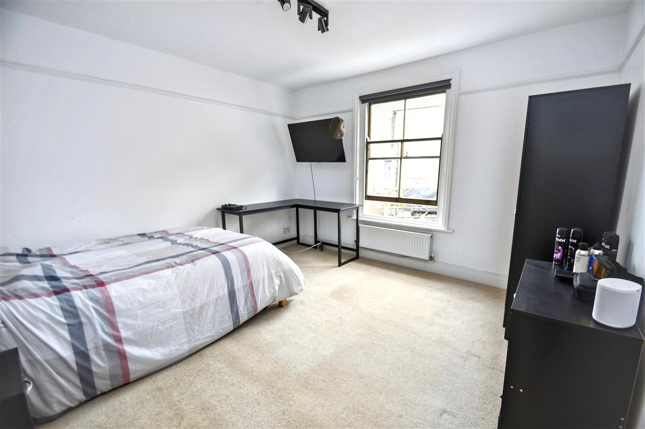 A spacious bedroom with sash window having an outlook over West Street, two radiators, plastered ceiling, picture rail, finished with a carpet.