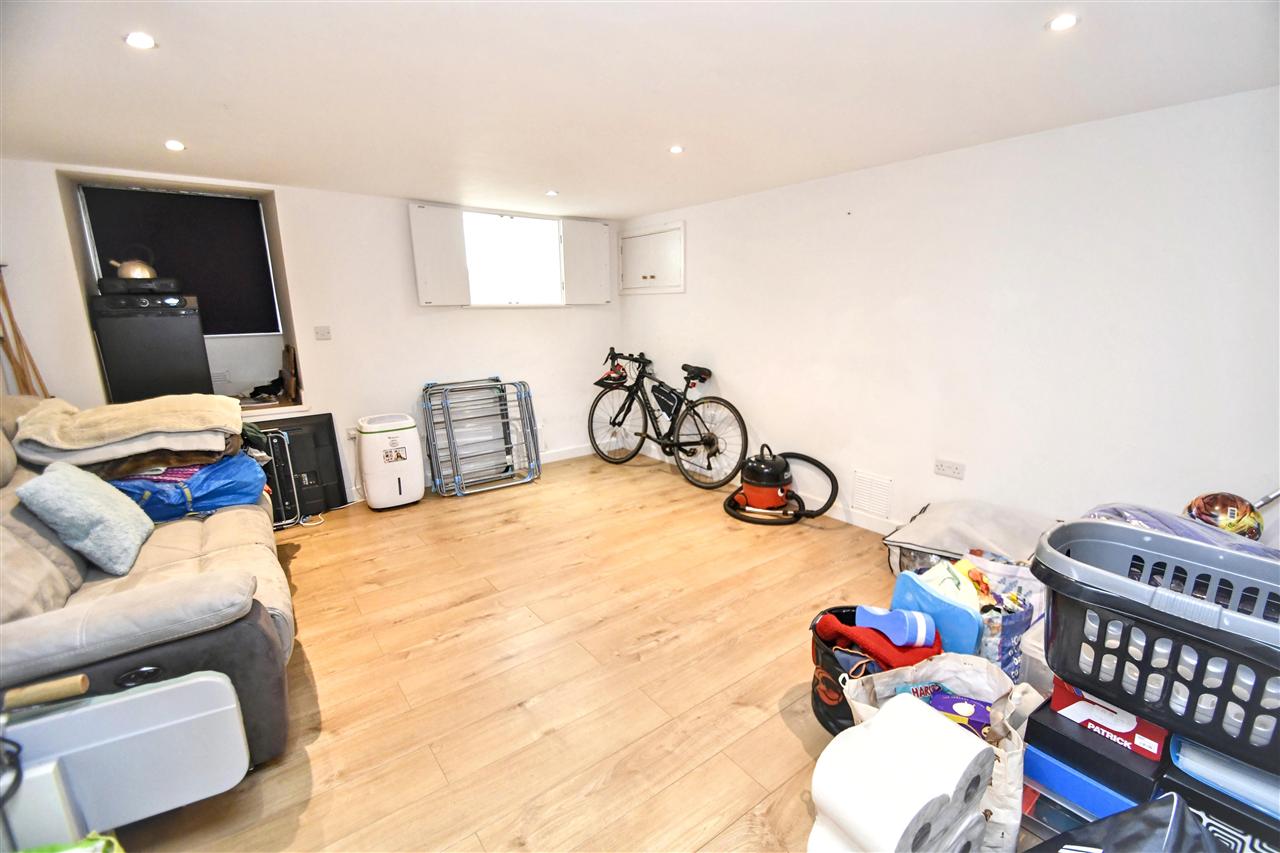 Previously used as a student let bedroom but currently used as a laundry room. Two windows, plastered ceiling with down lights, radiator, finished with a laminate floor.