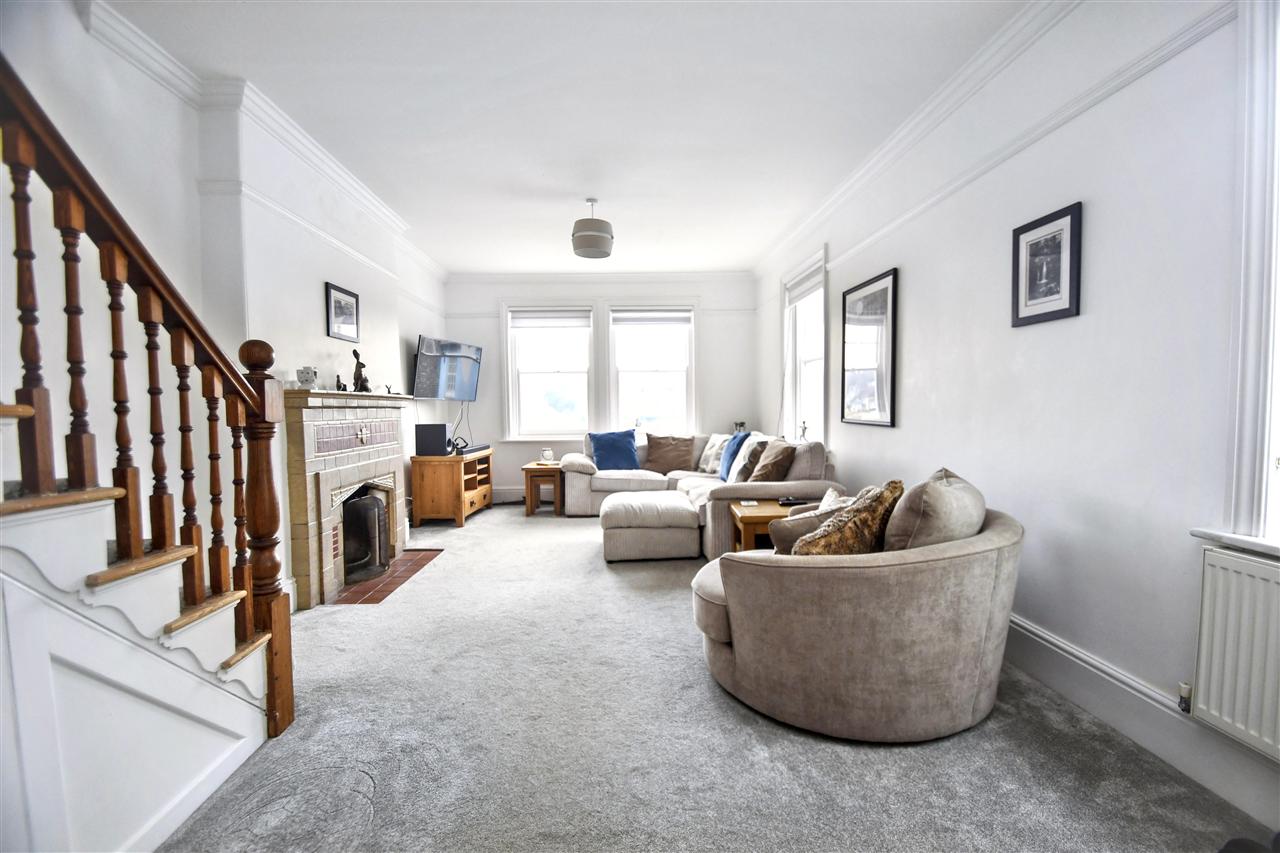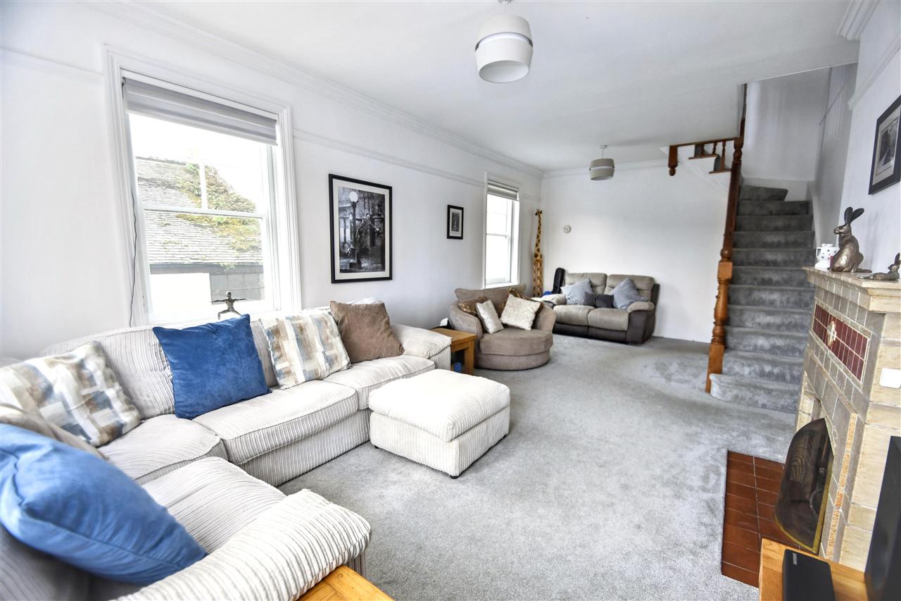 Accessed from the kitchen/diner on the lower ground floor via a staircase. A light and airy room with high ceilings and dual aspect with sash windows having elevated views over Penryn and beyond, feature open fireplace (currently not in use) with tiled surround and hearth providing a focal point to the room, two radiators, plastered ceiling with ceiling lights, picture rail, finished with a carpet, closed tread staircase leads to the second floor and bedrooms.