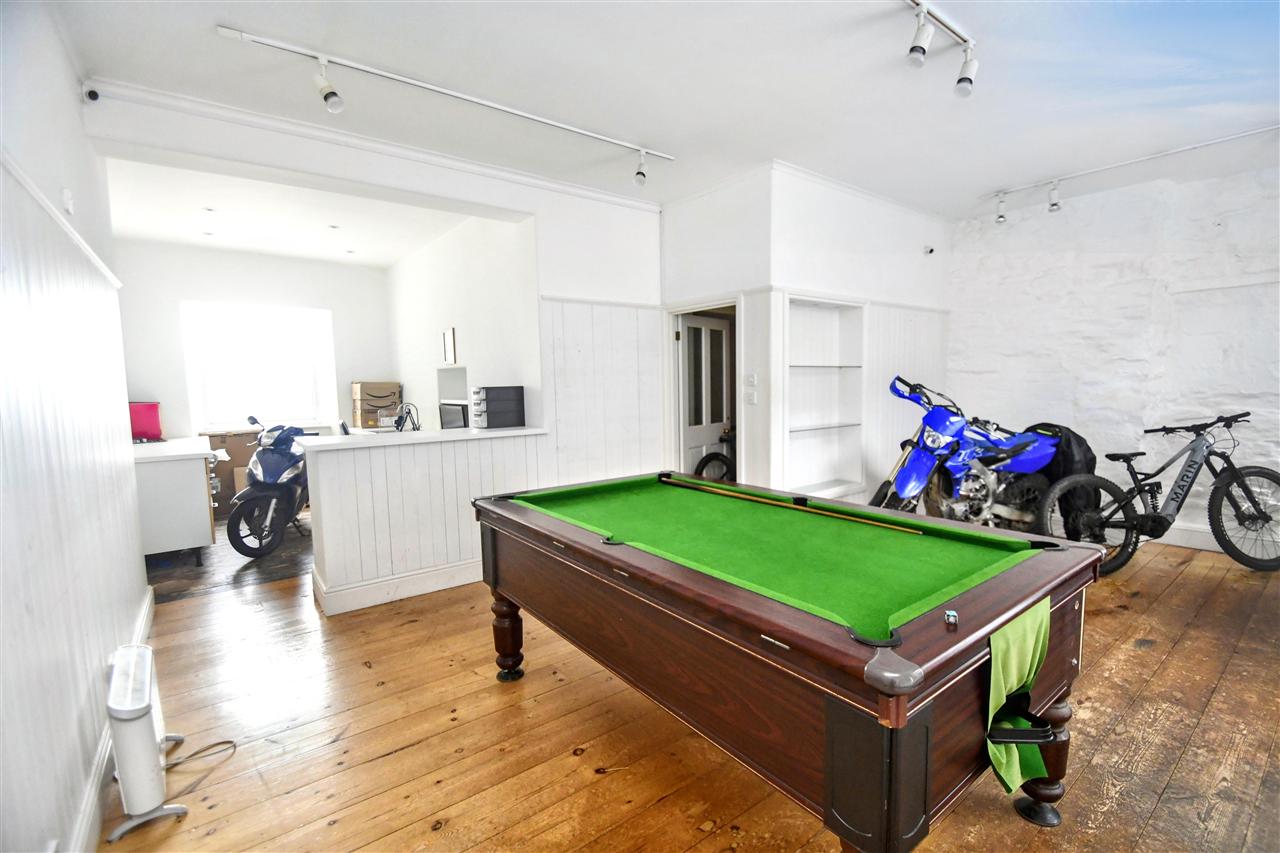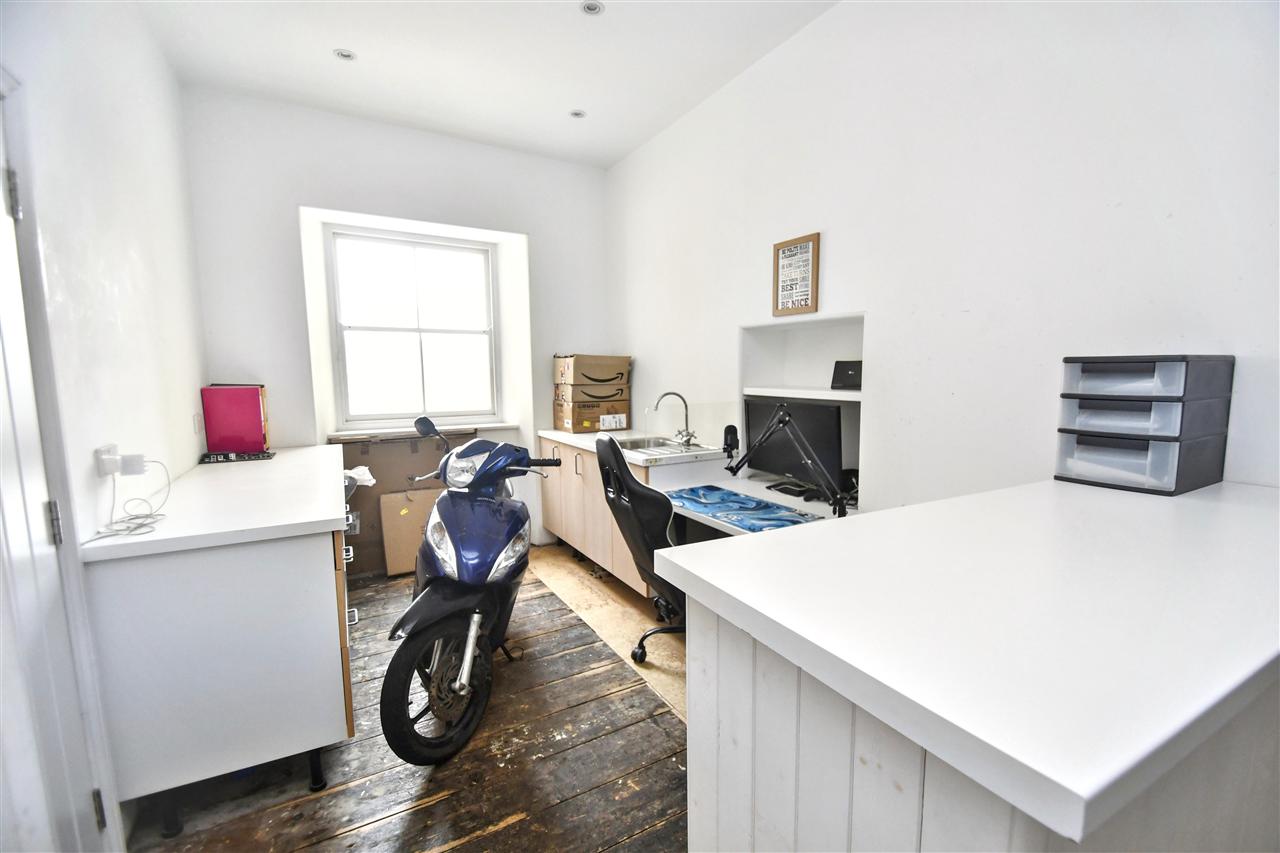 Formerly an accountants office that can be used for a variety of uses and is currently used as a games room. Former shop frontage with glazing and an outlook over West Street, glazed door opening onto West Street, timber floors, plastered ceiling and spotlights. This leads to a storage room and another kitchen area.