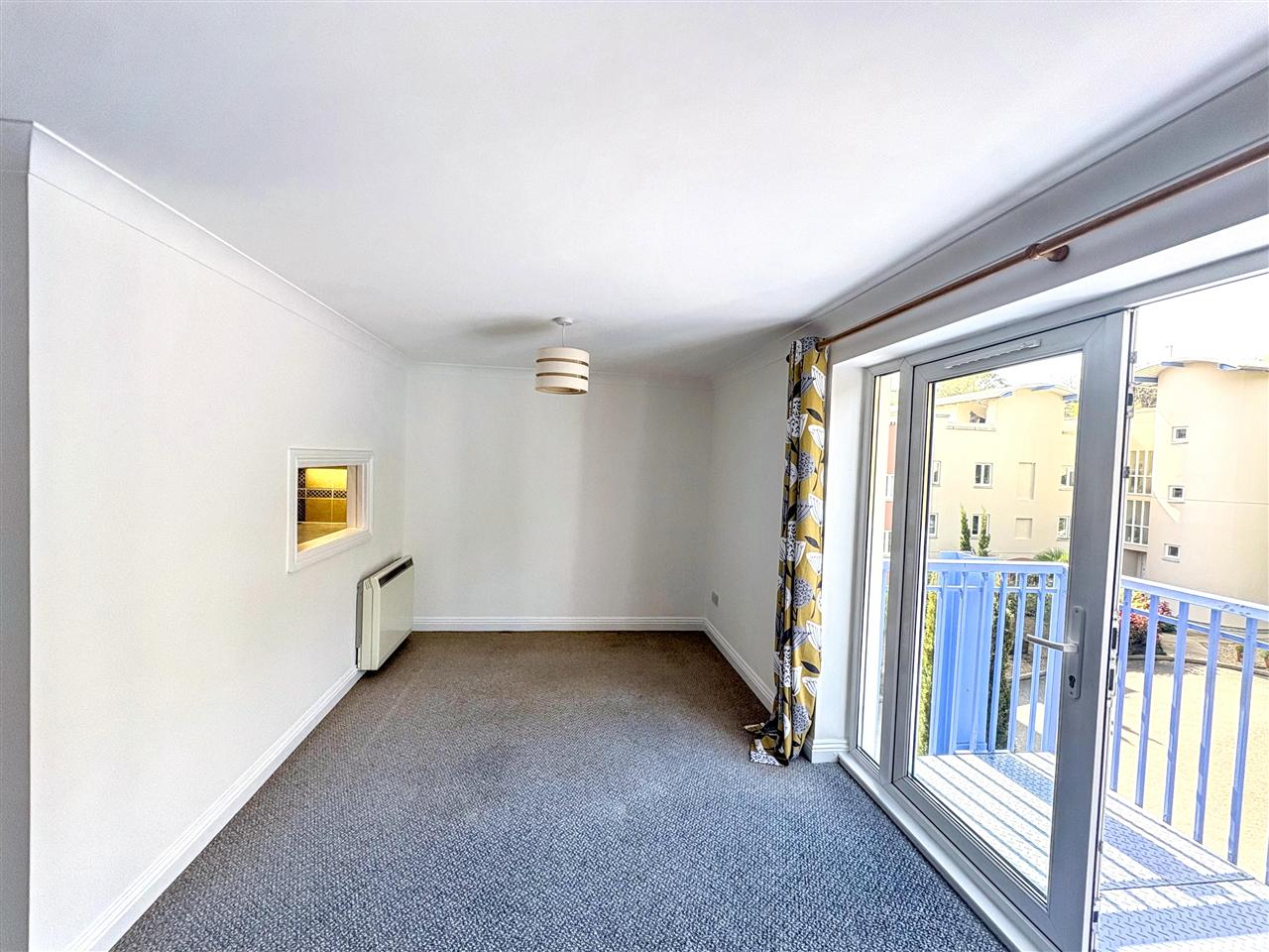 Freshly painted, electric heater, carpet, ceiling spotlights, double glazed patio doors leading to the balcony overlooking wooded area.