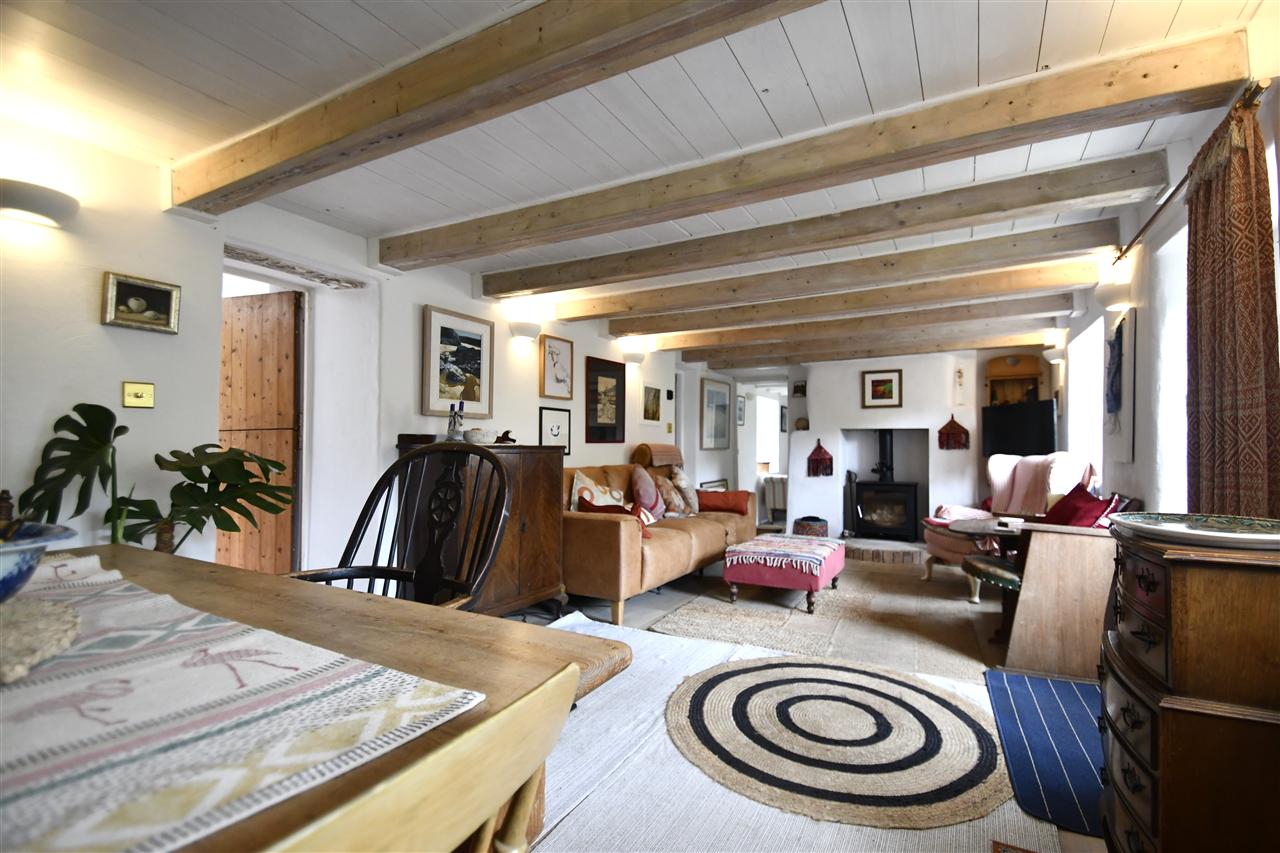 Internally the accommodation in brief comprises of an entrance vestibule with an area for boots and coats, recently fitted cloakroom/bathroom with an unusual seated bath, main living room/reception room which is 23’ long, a delightful room with character and charm throughout, a feature fireplace housing a free standing wood burner, sash windows and exposed wood beam ceiling, doors going off to the kitchen/breakfast room the snug/bedroom four and the stairwell. The kitchen is a traditional farmhouse style kitchen with wood wrap around work surfaces and a range with a pleasant outlook over the rear garden, to the side is a utility/larder area; reception two/snug/ground floor bedroom four is a dual aspect room with another traditional fireplace housing a free standing wood burner. A third doorway leads off to an inner porch with coat storage area and an under-stair cupboard housing the fusebox and super fast fibre; it also leads to a turned closed tread staircase onto a half landing and the first floor. On the first floor there is a recently fitted shower room which has been done to an exceptional standard, comprising of a three piece suite, three further bedrooms however one of which has had a wall removed, which can be reinstated, to make it a well-lit open plan studio area.