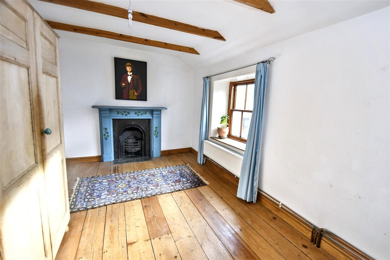 A delightful main bedroom which has a original focal point cast iron fireplace with painted surround, recessed multi-paned sash window with seal units and pine sill overlooking the front aspect, double radiator, pine beams and flooring, pine latch and brace door from the landing.