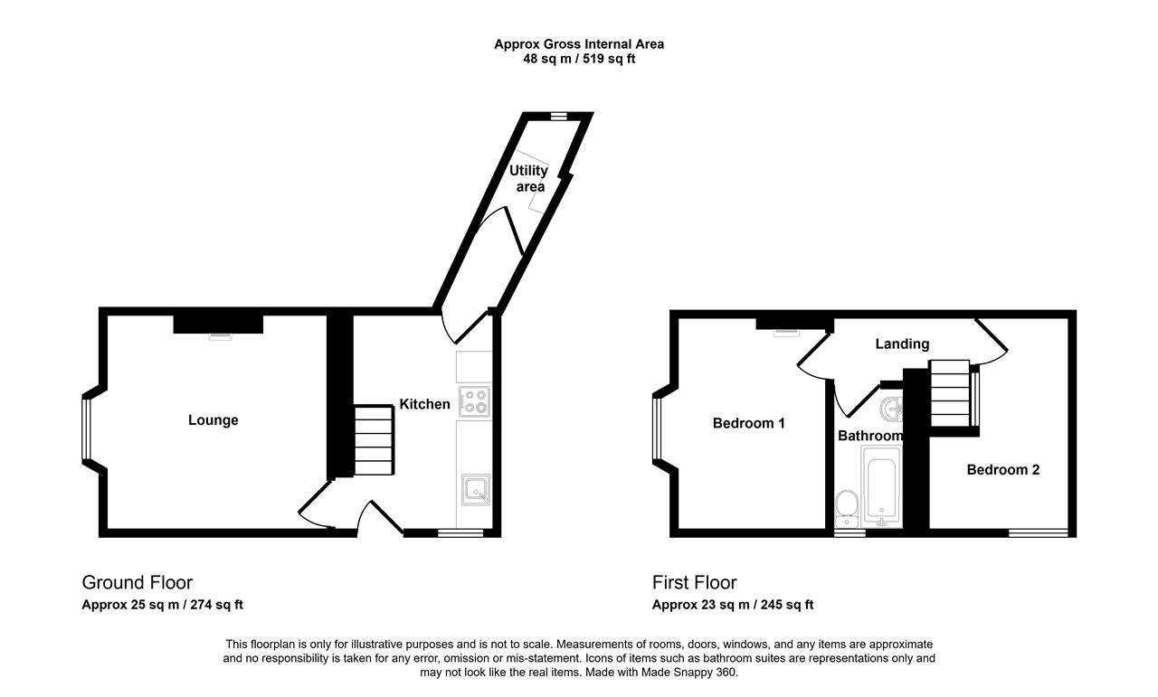 Comprises of lounge with feature fire wood burner, bespoke shutter blinds throughout, kitchen with useful storage and utility area. Upstairs offer two bedrooms and a modern shower/bathroom.