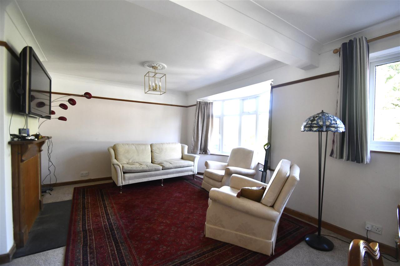 A lovely broad reception room which was formerly two separate rooms (could be re-instated with the addition of a door and stud wall). Enjoying a very pleasant outlook through a round bay window with double glazing and leaded light fanlights over, second double-glazed casement window overlooking the front, two radiators, a focal point dark wood and cast iron fireplace which has an inset gas living flame fire and slate hearth, storage cupboard with display area over, picture rails, two ceiling lights, telephone point.